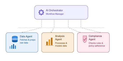 • Validation Agent – checks compliance rules or policies